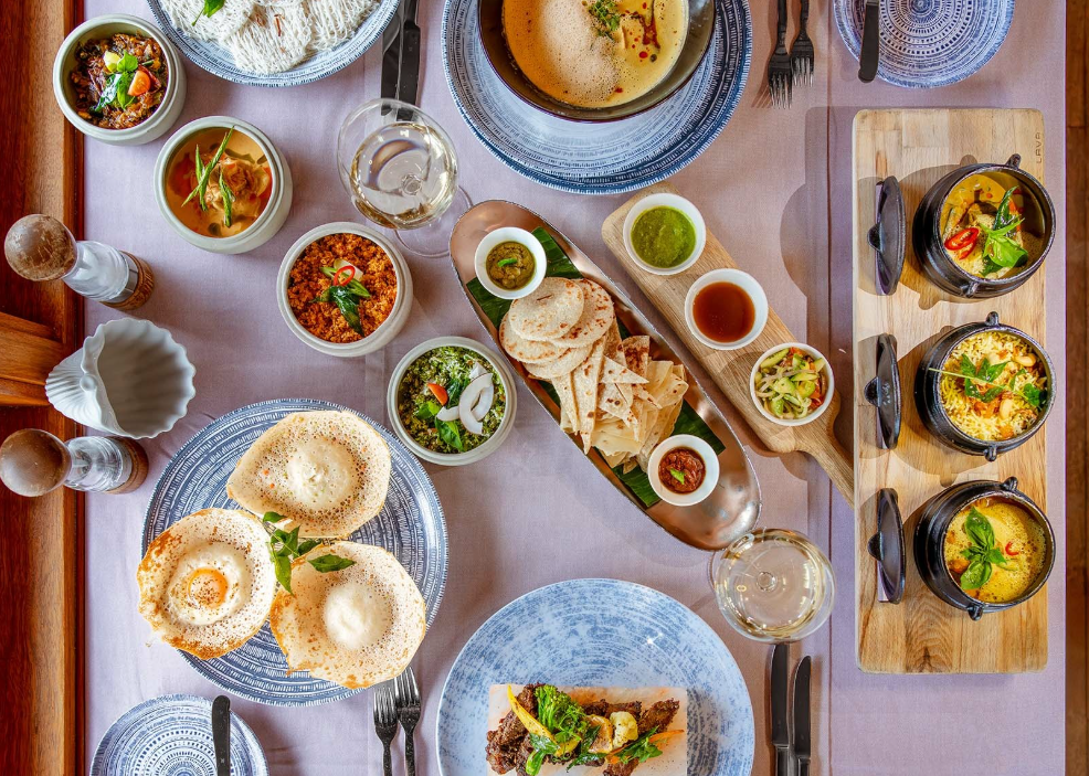 В меню также представлен «Малаайфай» —большое деревянное блюдо, искусно украшенное лаком, исторически использовавшееся для сервировки изысканных пиршеств по особым случаям, таким как религиозные праздники. В культурном плане оно символизирует единство сообщества и зачастую используется для подачи рыбного карри, риса и ассорти гарниров. В ресторане Ba’theli эта традиция почитается в виде множества блюд с рисом, таких как «Мас Бай» (рис с копченым тунцом) и «Фальхо Бай» (рис с папайей), а также шри-ланкийские лампрайсы, отражающие влияние более широкого маршрута специй. Здесь же традиционные супы, такие как бульон из тунца «Гаруд(х)ия», жареные лепешки и пирожки с рыбой и картофелем – основные элементы островного гостеприимства, дополненные яркими закусками, предназначенных для того, чтобы ими делились, например, салатом «сатани» из листьев карри, лука, тыквы и сырой папайи.